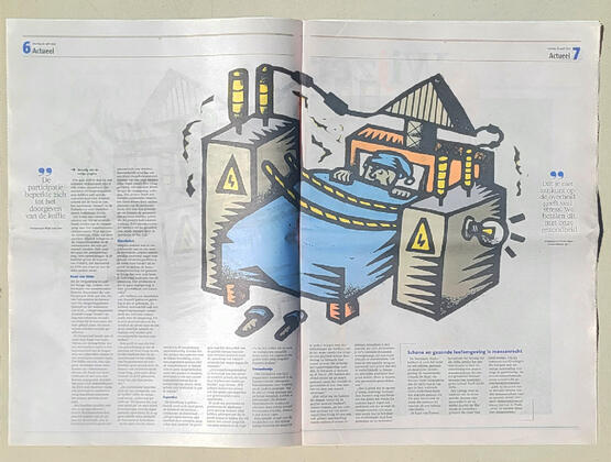 This illustration was originally commissioned as a cover for an investigative story in Noordhollands Dagblad. As the piece gained attention and the impact of the writer’s work grew, the item expanded in prominence — and so did the role of the visual storytelling.The article explored the increasing demand for electricity in the Netherlands and how the new infrastructure required to transport it will pass through densely populated neighborhoods. My illustration aimed to deepen the emotional tone of the story, highlighting the frustration and helplessness of residents affected by the endless buzzing of high-voltage lines. Despite formal agreements being made, many locals felt unheard and misled — caught in a situation they never truly agreed to.The artwork reinforces this atmosphere of unease and powerlessness, helping to visually communicate the core message of the report.